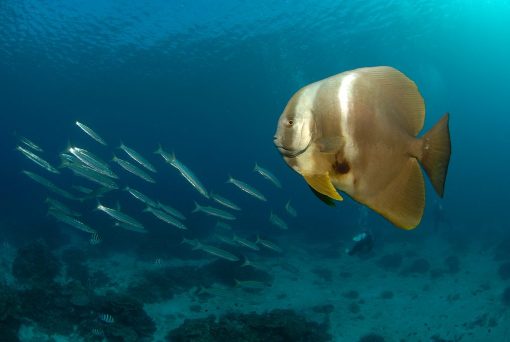 Batfish are common at Lady Elliot and are often “friendly”, or at least curious of divers, accompanying us along the reef on several of the dives, as if escorting us from bommie to bommie. Quite often they would latch onto a particular diver which caused some amusement among the dive group.