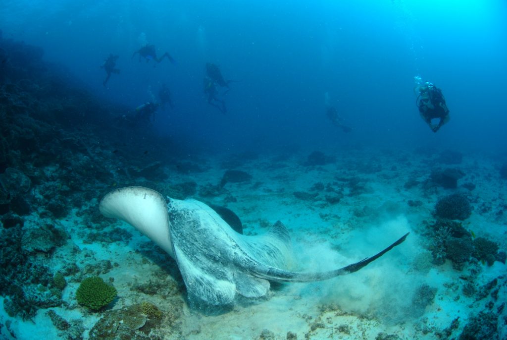 In three days of diving we logged manta rays, eagle rays, shovelnose rays, bull rays, reef sharks, leopard sharks, batfish, schooling jacks and barracuda, and a lot of turtles. The coral was in great condition, too, with the plate corals being particularly impressive. We didn’t see any dolphins during our stay but they are regular visitors, and there’s also the seasonal spectacle of migrating humpback whales.