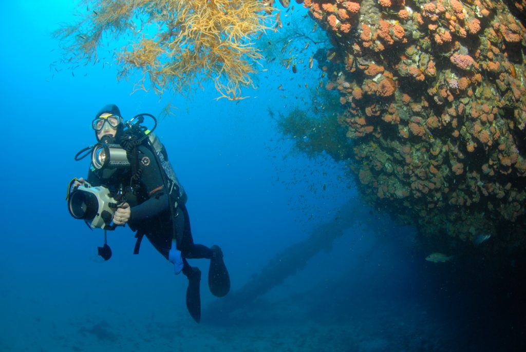 Expect to be blown away by the amount of life that has colonised this wreck. You’ll see more species of coral and fish than on most reefs. Everything is in profusion, abundance, or even superabundance. And big, too!