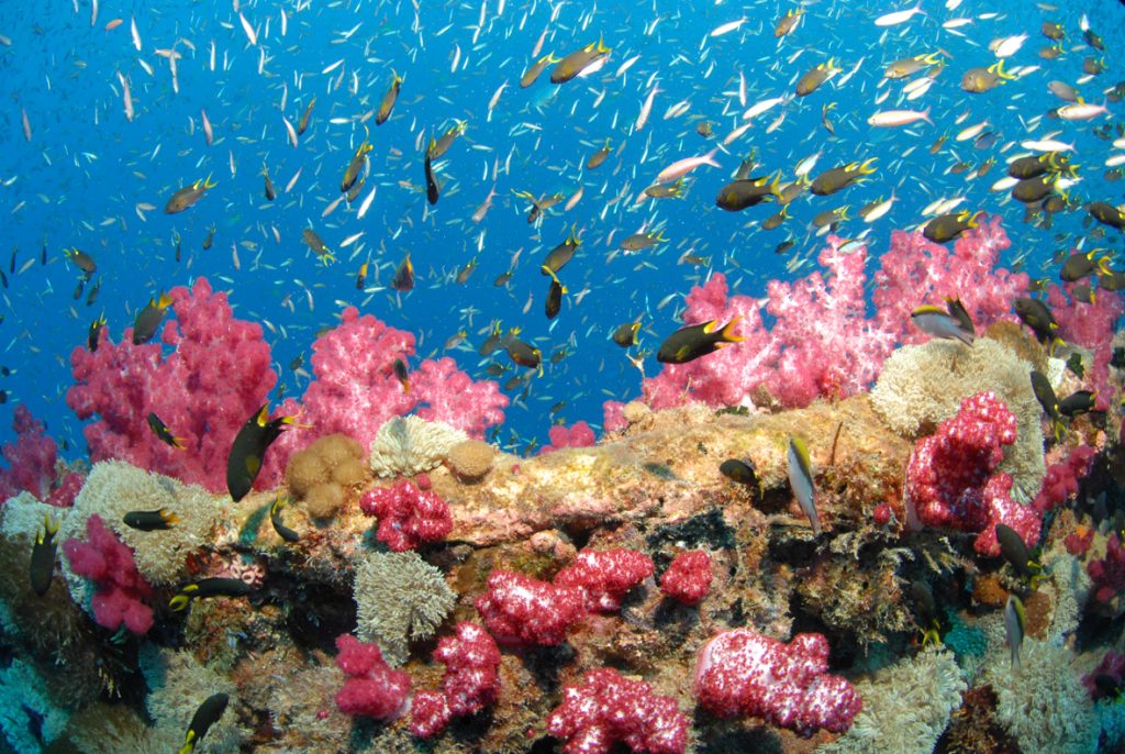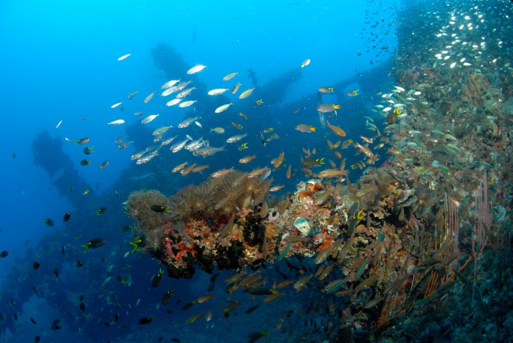 The amount of life that has colonised the wreck is truly astonishing. Corals, sponges and anemones are so prolific that it’s easy to forget that you’re diving on a wreck. At times, the surface of the Yongala seems to move, as carpets of baitfish react in unison to real or imaginary threats.