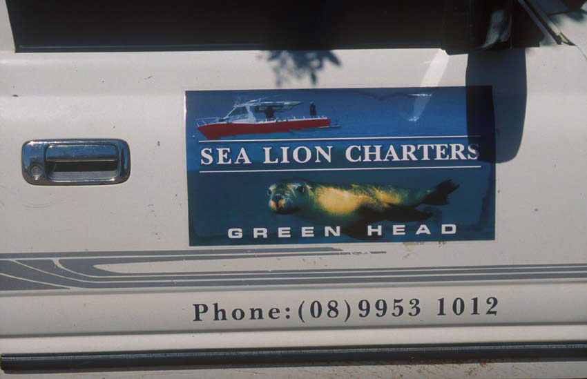 We couldn’t find much information about the trip in any guidebook or on the internet, so we planned a two-night stop at Green Head en route north to Ningaloo, taking a chance on turning up and hoping that the trip would be running. Once in Australia, we were able to contact Sea Lion Charters and make a booking. Also, we changed our itinerary slightly giving us two visits to the sea lions, instead of the single trip we’d expected.