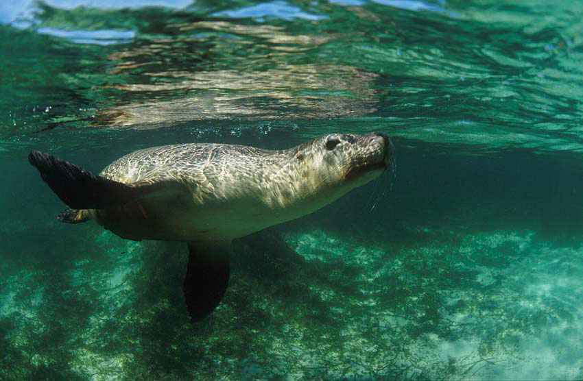 He also explained which areas to avoid, in particular the “nursery”, which is strictly off limits. Here, at the southern end of the beach, newborn pups are nurtured in relative safety away from the commotion of the main group. Also, any snorkeller tempted to haul out on the beach may get a completely different reaction from the sea lions in the water, so again, another area to steer well clear of. Rules laid down by CALM (the Department of Conservation and Land Management) make such an activity illegal, so as well as being attacked, you could also be prosecuted!