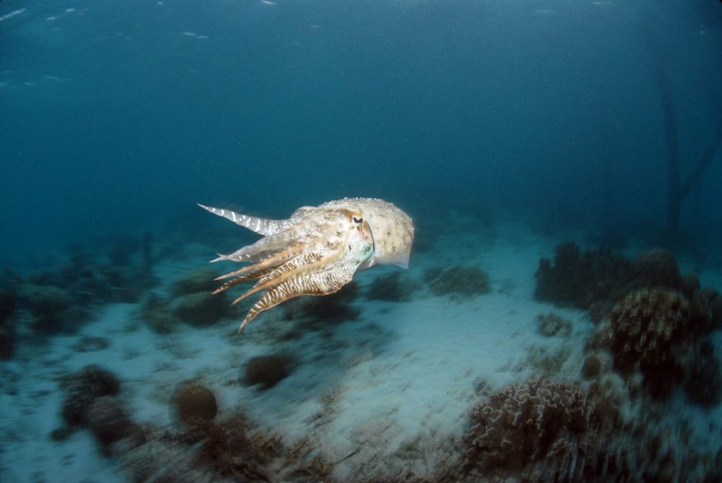 Of the reef sites we visited, Mel’s Rock, Laura’s Point and Goby Rock were the most productive with impressively large jawfish, more large cuttlefish in “mating mode”, spectacular ribbon eels (especially the blue and yellow specimens), a lone leaf scorpion fish and a plentiful but skittish species of stingray being regular rewards for our efforts. Of the “bigger things”, schools of barracuda and jacks can cruise past at any time, and leopard sharks are also regularly sighted resting out on the sandy expanses. One of our group even witnessed a pair of leopard sharks mating. Unfortunately, I wasn’t lucky with the leopard sharks and missed them on each occasion they were encountered.