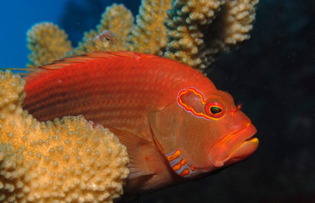 Niihau is also a good place to find Leaf Scorpionfish, Frogfish, Barred Wire Coral Shrimp, Wire Coral Gobies and Harlequin Shrimp alongside the more conspicuous inhabitants, which include the Yellow Tang, Bluestripe Snapper, Arc Eye Hawkfish, Stocky Hawkfish, Yellowfin Goatfish, Yellowmouth Moray, Red Pencil Sea Urchin, Guard Crab, Hairy Yellow Hermit Crab, Day Octopus and the Reef Triggerfish, which is known locally as the tongue twisting humuhumunukunukuapuaa!