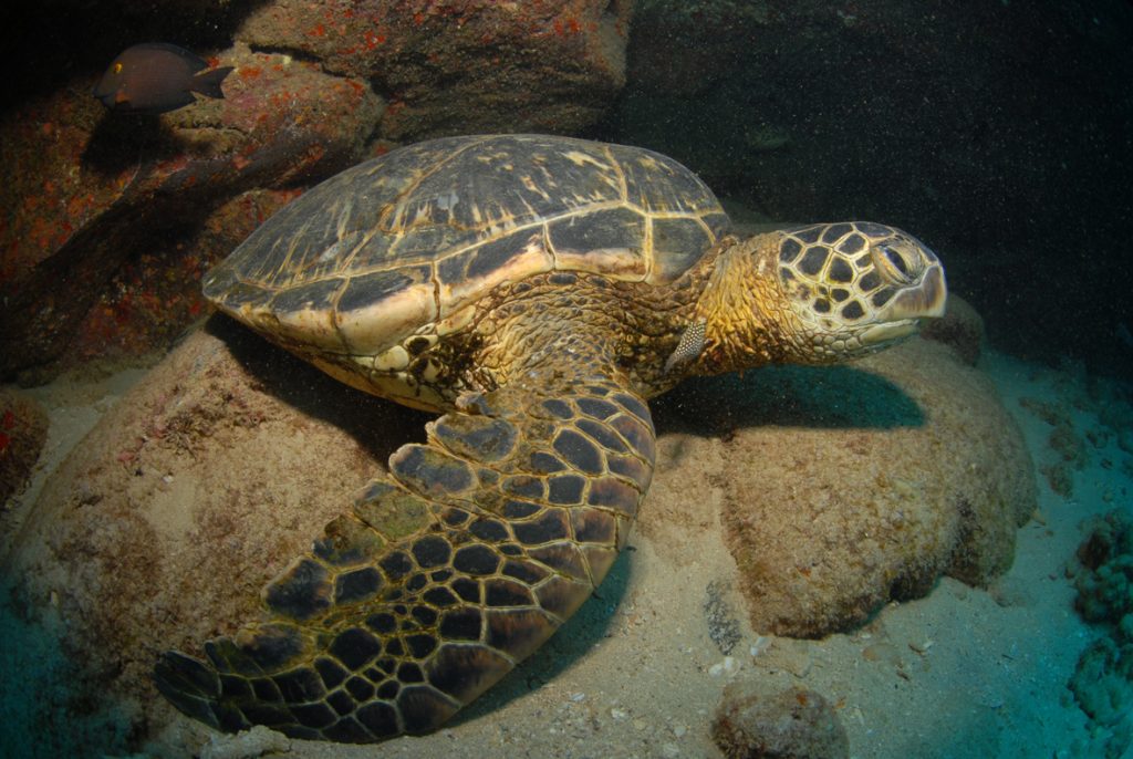 For divers unable or unwilling to visit Niihau, there’s theoretically a chance of encountering Hawaiian Monk Seals, particularly around the dive sites off the south shore, although they tend to fleeting. You’re much more likely to see one out of the water, as they sometimes haul up to rest on beaches, and not always the deserted ones either. One of the more likely hangouts (or haul outs!) is Poipu Beach, which is close to several large resorts.
