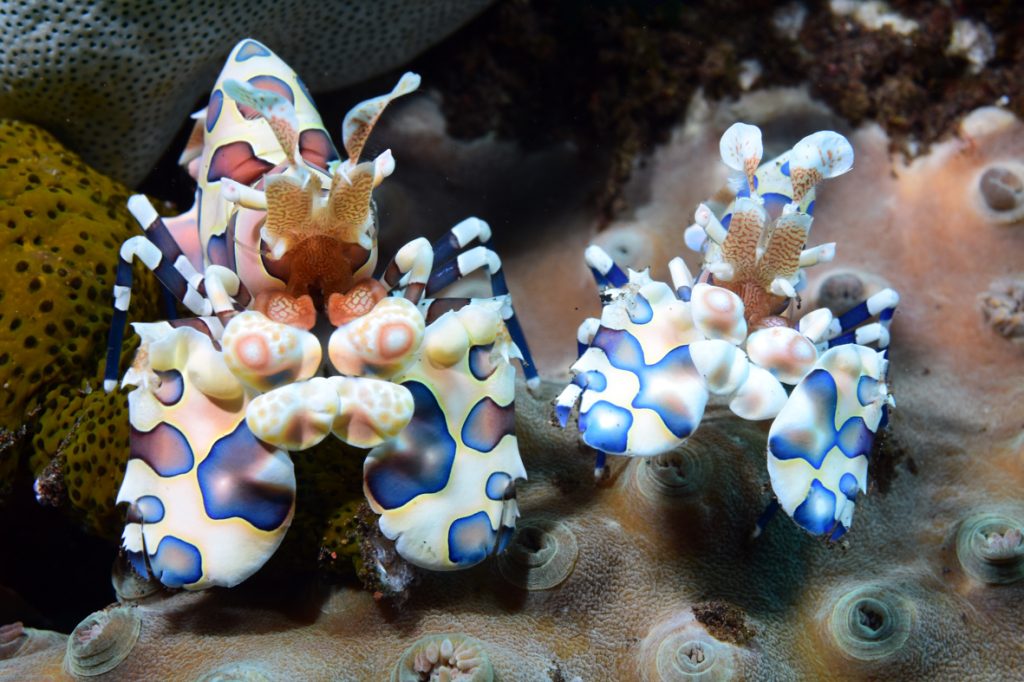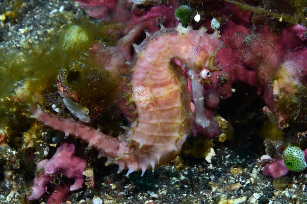 One such site that we visited was the excellent Sidem (originally known as Lombok View). In terms of underwater topography, it’s a sandy and weedy slope full of promise. For me, it’s become forever associated with the search for a prized Rhinopias scorpionfish, not only on this trip but also on my previous one. I’d frustratingly missed out on seeing one at the same site five years ago, and having been told that a fine specimen was again present at the site, I hoped this time it would work out. As Paing searched for the Rhinopias, there were plenty of other things to interest us. Especially memorable were seahorses, mantis shrimp, devil scorpionfish and a pair of harlequin shrimp, a beautiful but deadly species that specialises in dismembering and eating starfish.