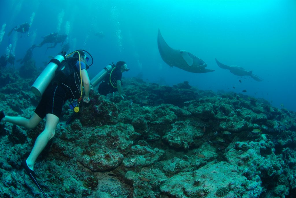Liveaboards are mostly out of the question except for the unique family weeks offered by the Aggressor Fleet in the Caribbean, and exotic far flung dive resorts in places such as Raja Ampat aren’t always affordable or practical for even the most adventurous family. So where in the Maldives could we go to get that rare combination of good diving and family friendliness?