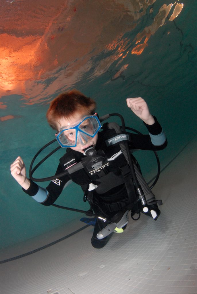 The course isn’t easy for a 10 year-old, as time is spent is in the classroom ensuring that the diver “understands” what they’re doing (which includes an exam), and that all the skills are mastered in the pool before heading to a “real” dive site.