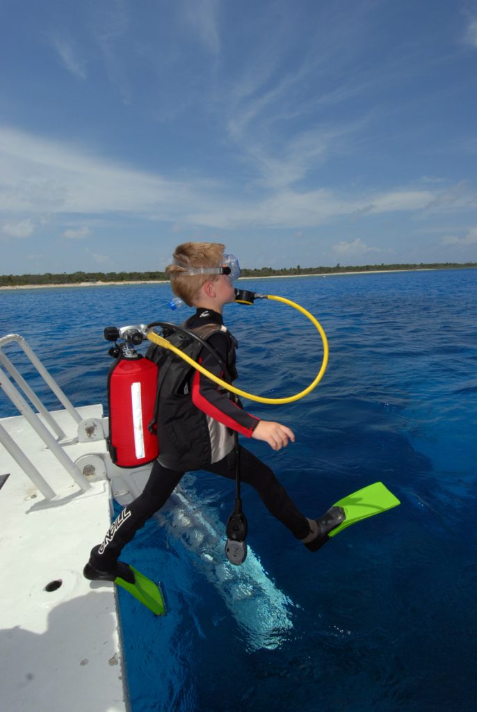 In the Caymans, Zac would get his first opportunity to emulate a “real” diver where he would attend the dive briefing and be shown how to kit up, check air and so on. He would then enter the water with a crew member using a SASY (Supplied Air Snorkelling for Youth) setup which is a self contained regulator and tank, but for surface swimming only. With this equipment, a child can thus breathe through a regulator like a diver, check air and view the reefs from above, but without the snorkel filling with water. It’s a great step towards becoming a diver.