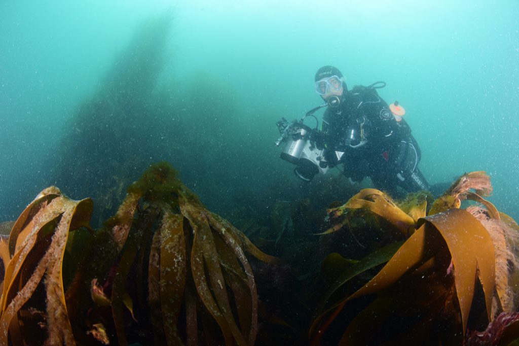 Though difficult conditions for diving and photography can be encountered anywhere in the world, the chances of it are increased in temperate waters, which can suffer from being “blown out” due to bad weather, poor visibility, run off from the land after rain, plankton blooms and so on. It’s also a different “vibe” due to the dive gear required in order to get in the water – either a thick wetsuit or a dry suit which is restricting in terms of movement compared to the freedom of diving in a shorty or a skin in the tropics.