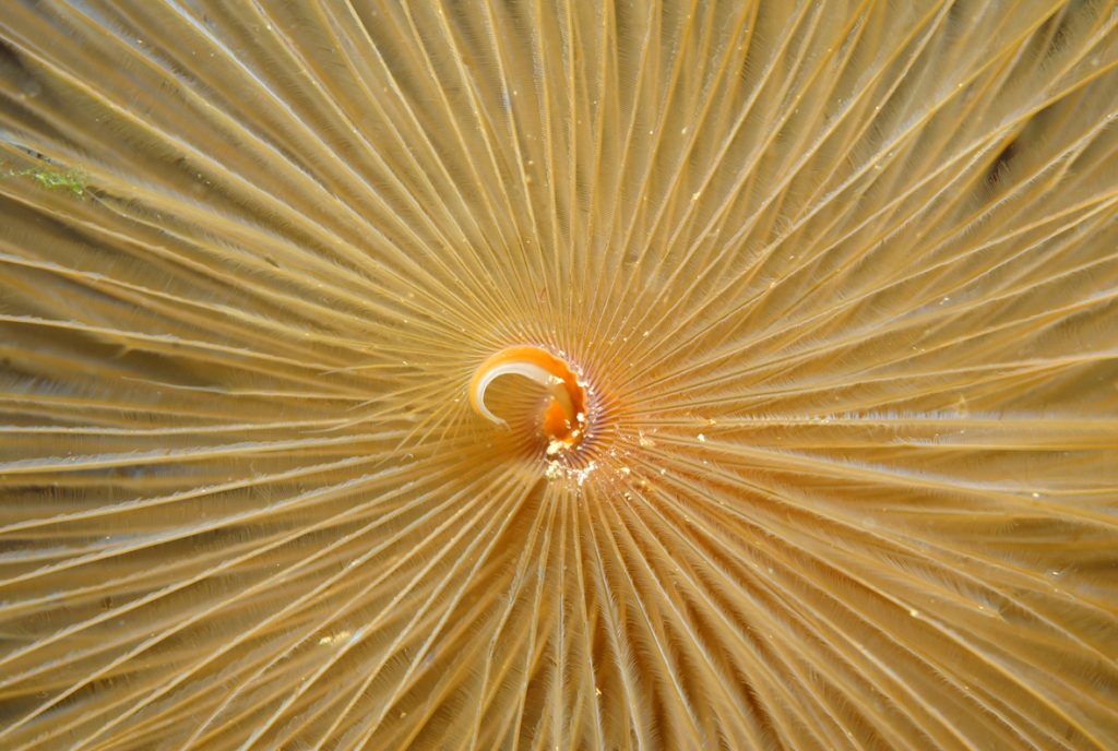 My visit in mid-June was very productive, and would be as good a time as any to go. Around the ledges of L’Islet, look out for impressive tube worms, and in amongst the weed and kelp beds there’s plenty of wrasse, including some quite hefty specimens. I also noticed the parasitic crustacean Anilocra hitching a ride on some of the wrasse, like something out of “Alien”, though getting close enough for photography eluded me during the visit.