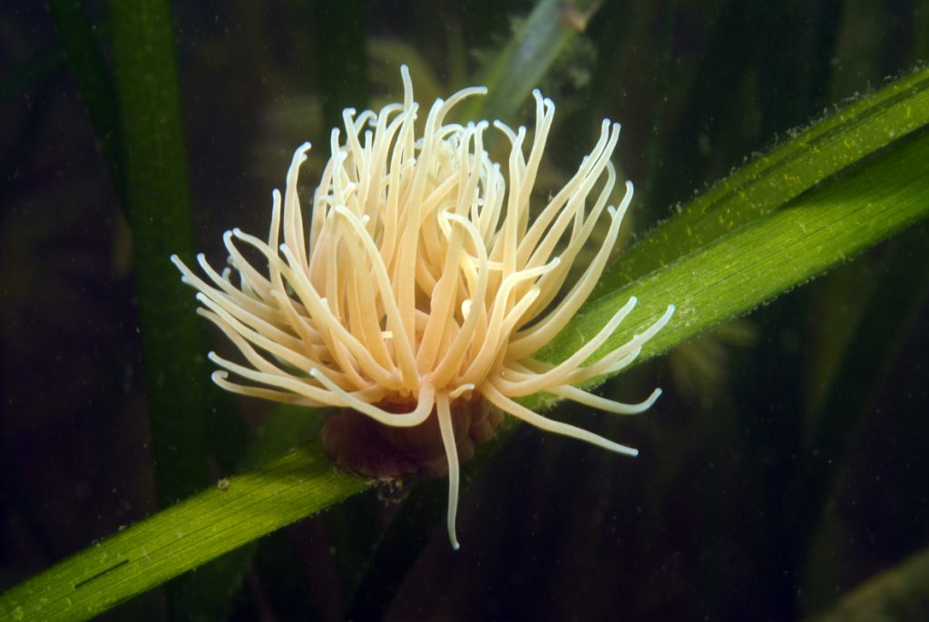 We encountered extensive weed/seagrass beds, anemones, spider crabs, tompot blennies (wherever there are rocks or rubble), gobies, schools of bass, wrasse, prawns, flounder, fry/larval fish, whelks and what I believed was a tiny squid.