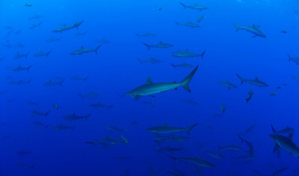 This dive was a real stroke of luck; we’d been dropped into the path of huge school of Silky Sharks, possibly numbering a thousand individuals. It was an incredible sight and is often referred to in the diving community as “shark wallpaper” and an increasingly rare spectacle in today’s impoverished seas.