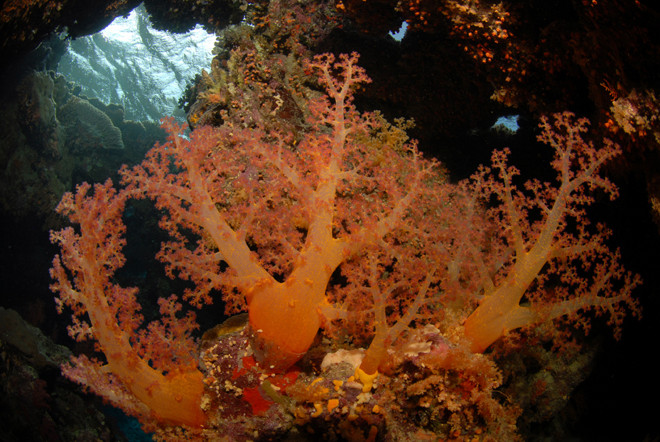 Description –- Whilst exploring some of the swim-throughs at Dangros Reef in the Egyptian Red Sea, I found this splendid soft coral in an accessible place close to the surface. There was enough room to position the camera and strobe without causing any damage to the ceiling of the swim-through. The “skylight” adds an extra dimension to the image which was captured using a Nikon D200/Subal Housing set up with a 10.5mm fisheye and a single Subtronic strobe.